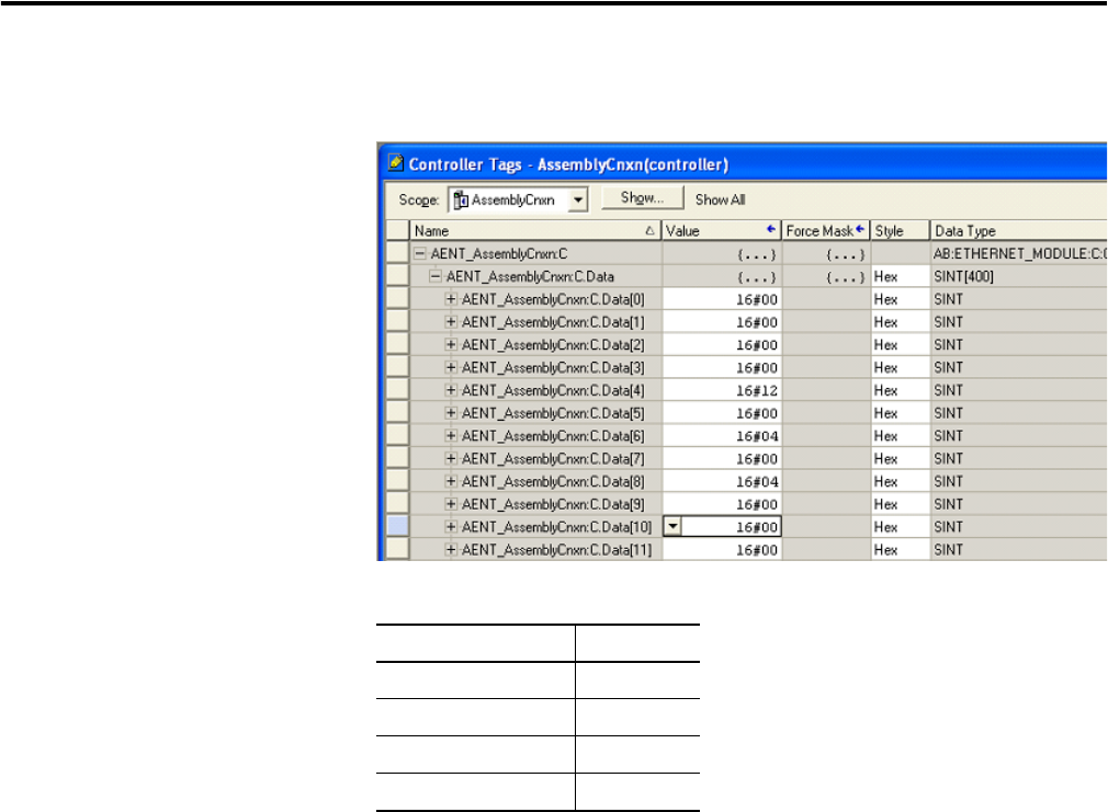is being configured. Byte 10 indicates that the data is to be sent to slot 2. Byte