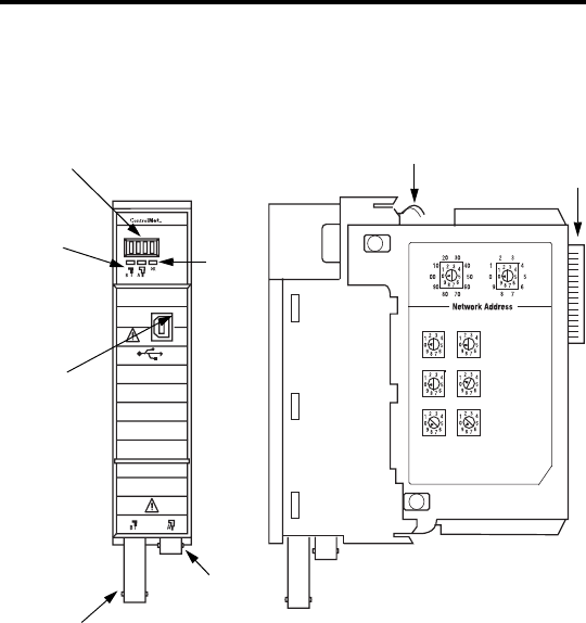 These are the hardware components of the 1756-CN2 and 1756-CN2R