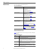 Chapter 4 Configure the Module 4. Use program logic or the RSLogix 5000 tag editor to define the following values or counter control functions in the module’s output tags. Value or Counter Control Function Output Tag Window On/Off Counter[x].Window0On, Counter[x].Window0Off Counter[x].Window1On, Counter[x].Window1Off Preset Counter[x].Preset Rollover Counter[x].Rollover Count Enable Counter[x].DisableCount Reset Count Counter[x].ResetCount Preset Count Counter[x].