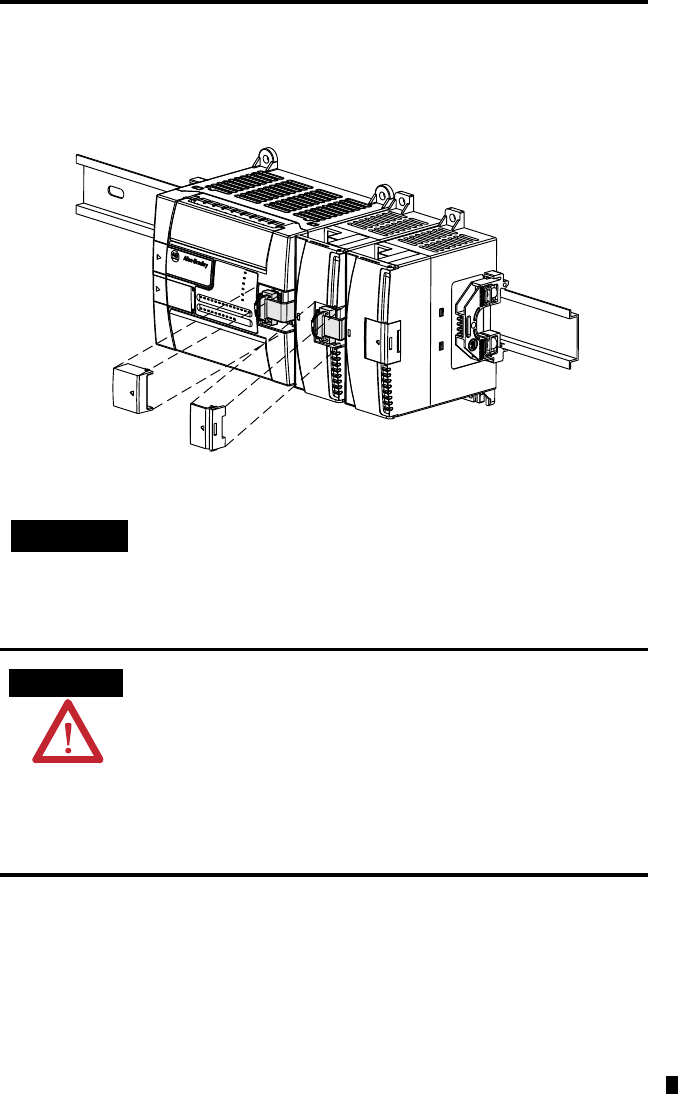 The expansion I/O module is attached to the controller or another I/O module by means of a
