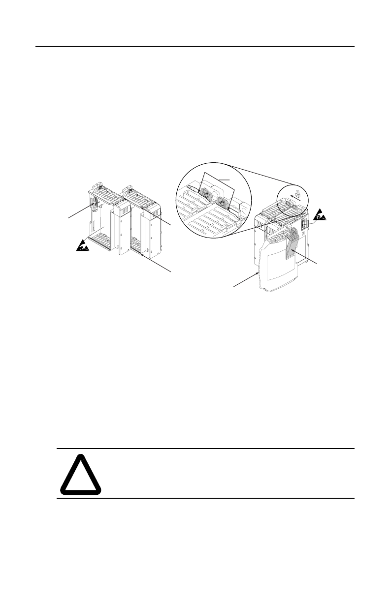 7. Attach an end cap terminator (5) to the last module in the system by using