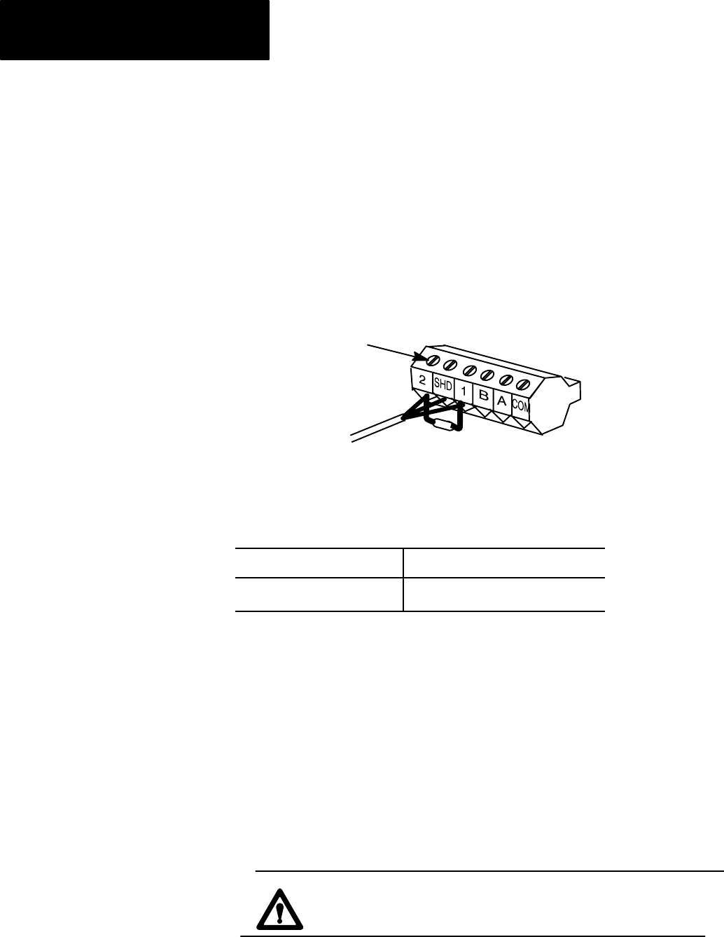 A termination resistor must be installed on the last block in the series.