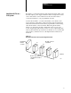 Chapter 1 Introducing Block I/O Discrete transfer (Figure 1.3) is intended to be used with controllers which do not have block transfer capability. However, discrete transfer can be used with any PLC family controller. When using discrete transfer, the block looks like a 1/2 I/O rack to the controller (four words of input image table memory and four words of output image table memory). Note that certain alarms and user scaling features are not available when using discrete transfer. Figure 1.