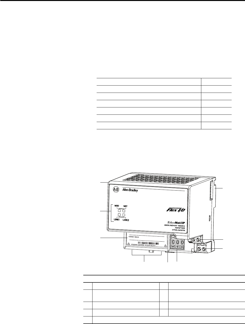 1 Dual Port EtherNet/IP adapter 6 Module locking tab