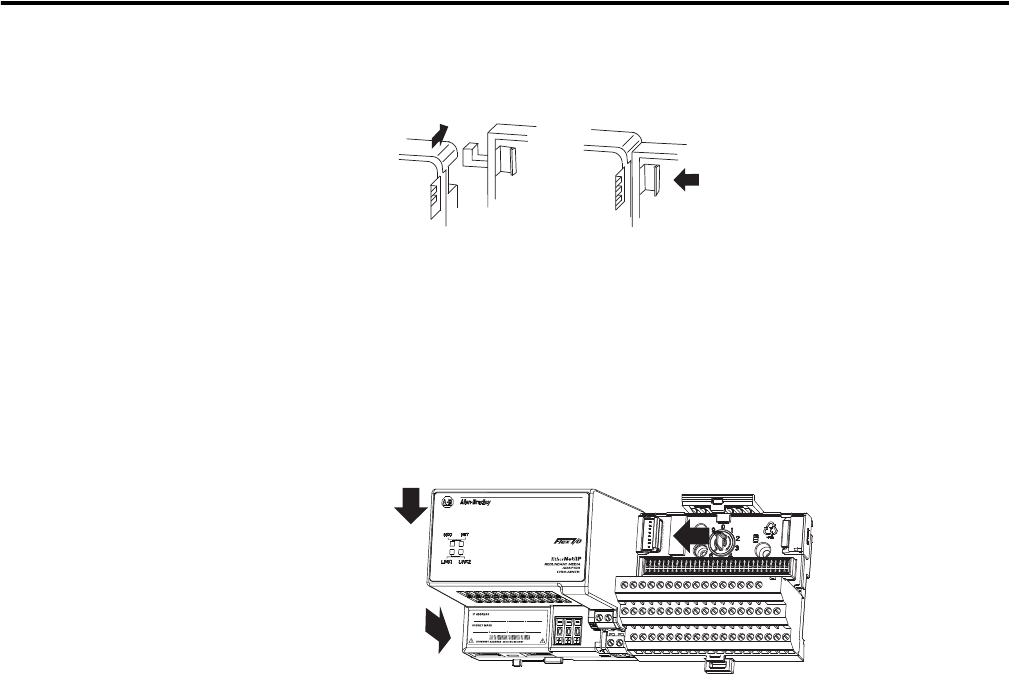 Push down and in at the same time to lock the adapter to the DIN rail.
