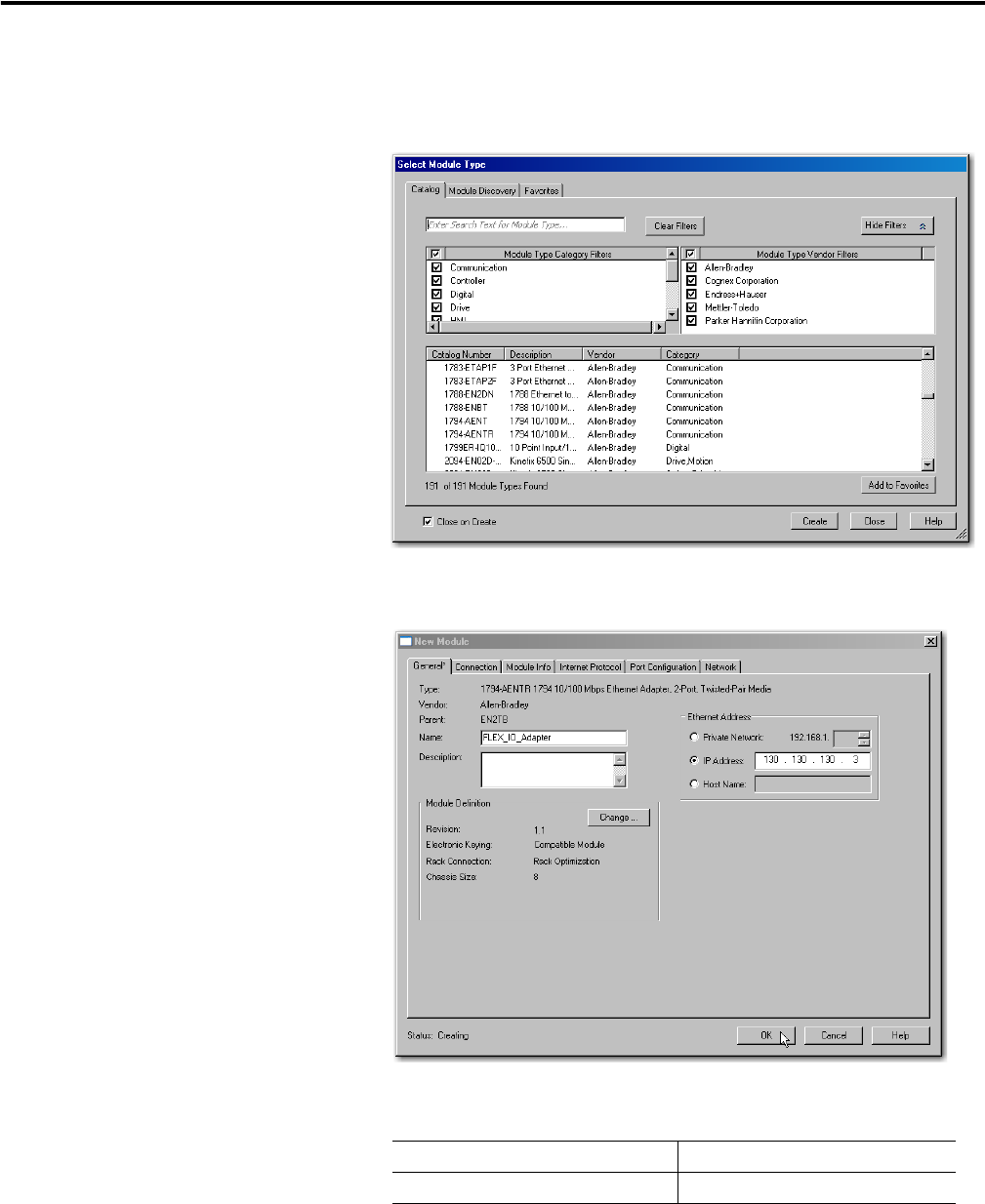 2. Select the 1794-AENTR Ethernet adapter from the list and click Create.