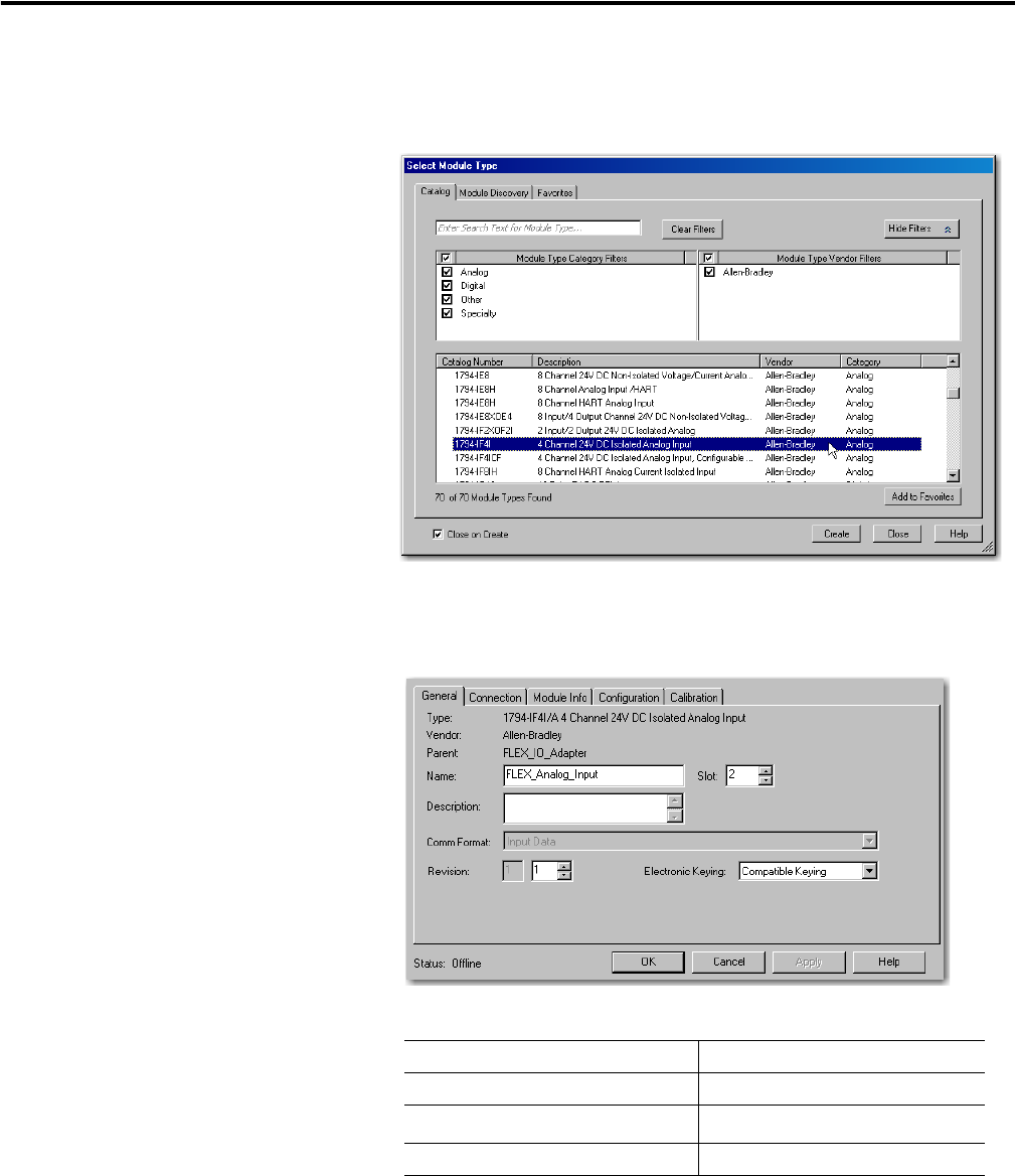 2. Select the 1794-IF4I/A analog input module from the list, and then