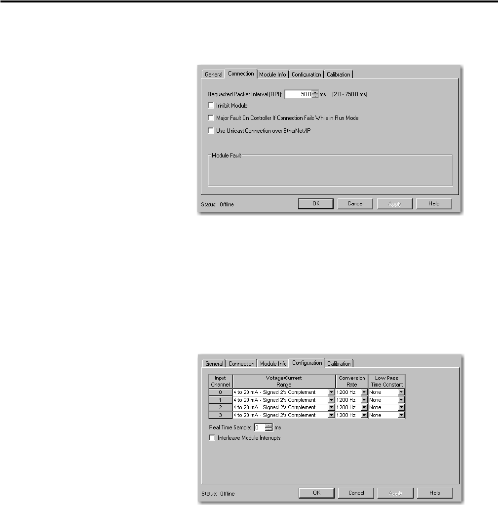 5. On the Connection tab, adjust the Requested Packet Interval (RPI) to
