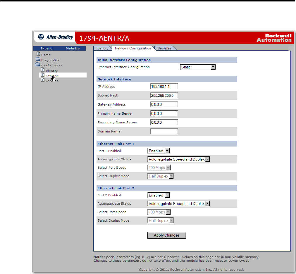 The Network Configuration page opens.