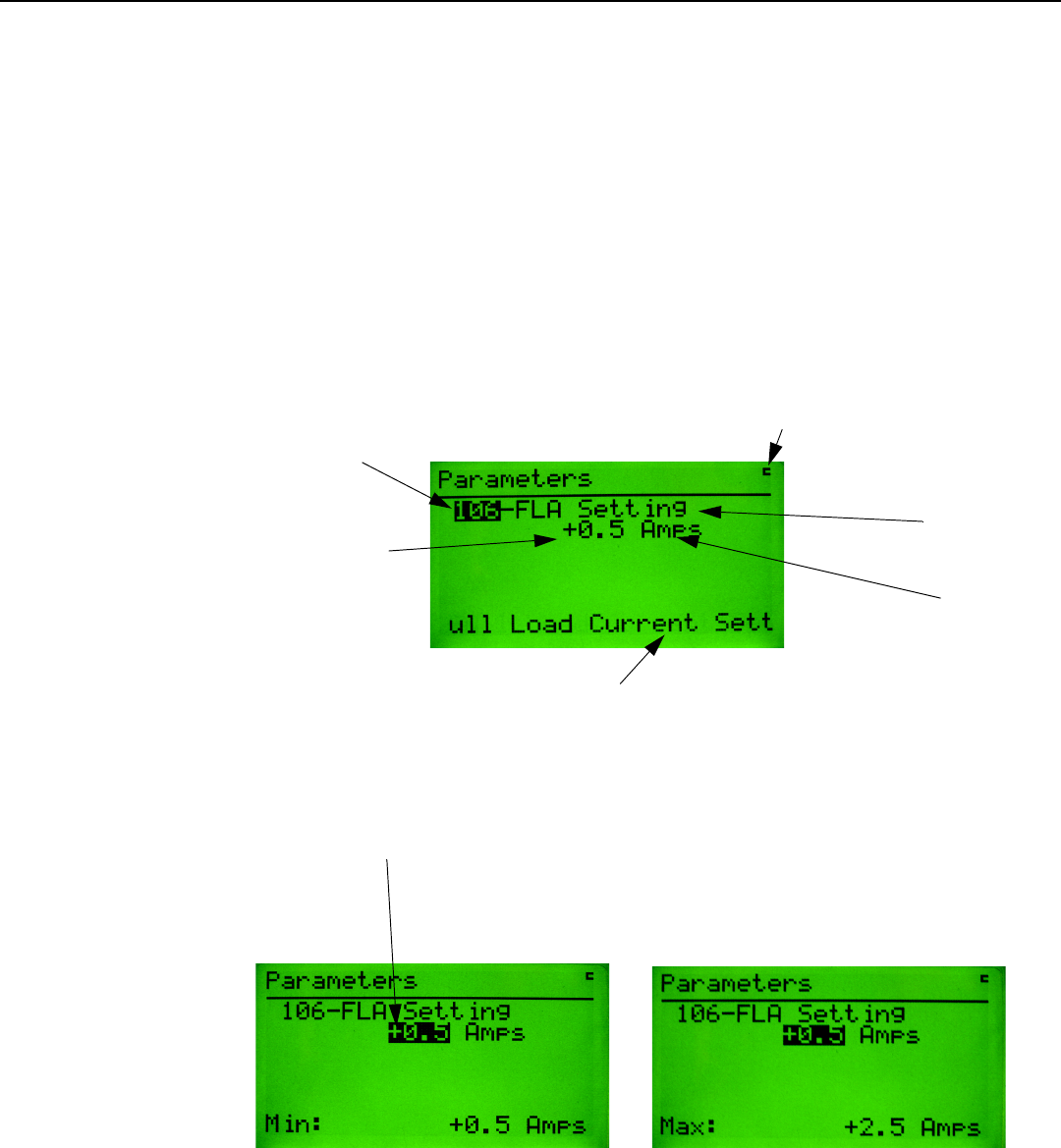 parameter values can be monitored or edited. Scrolling through a parameter list is accomplished by