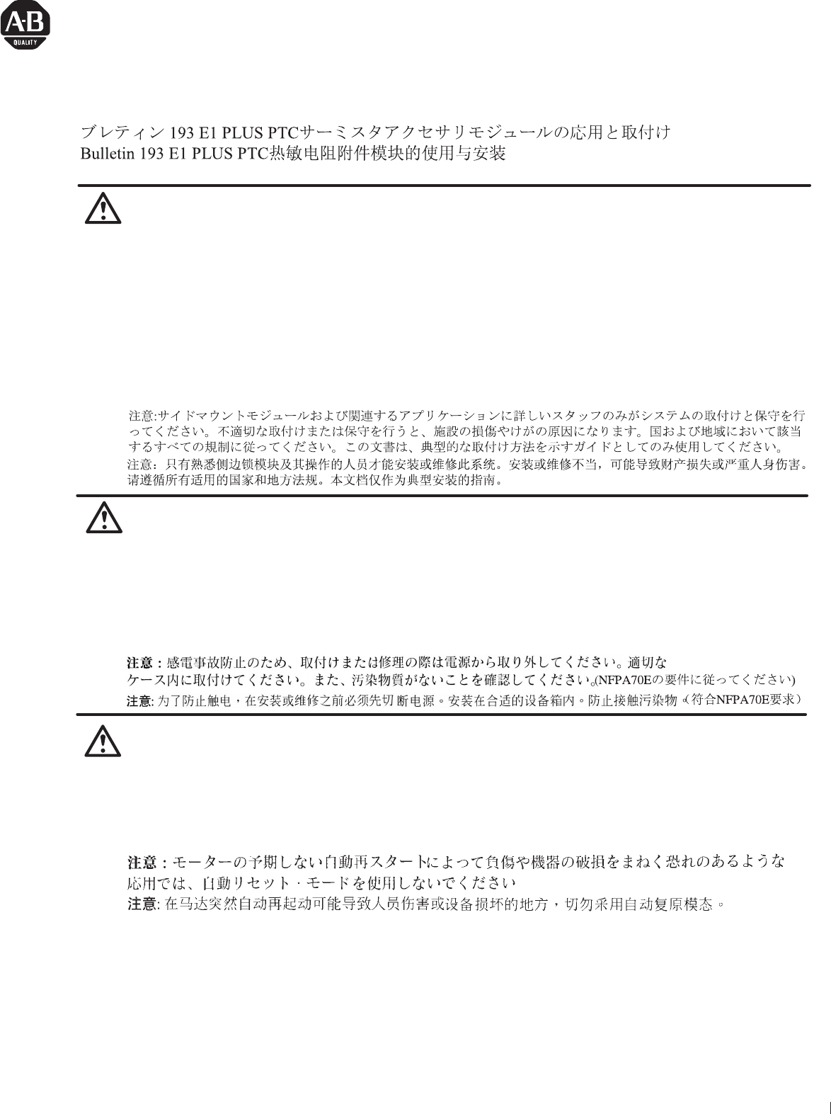Bulletin 193 E1 PLUS PTC Thermistor Accessory Module Application and Installation