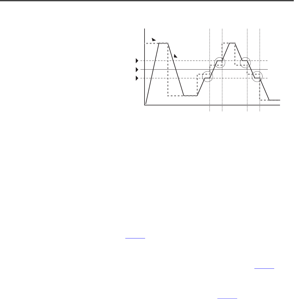 Acceleration and deceleration are not affected by the skip frequencies. Normal