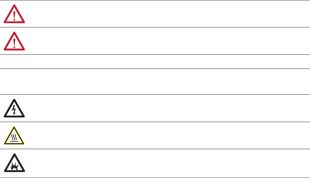 WARNING: Identifies information about practices or circumstances that can cause an explosion in a hazardous environment,