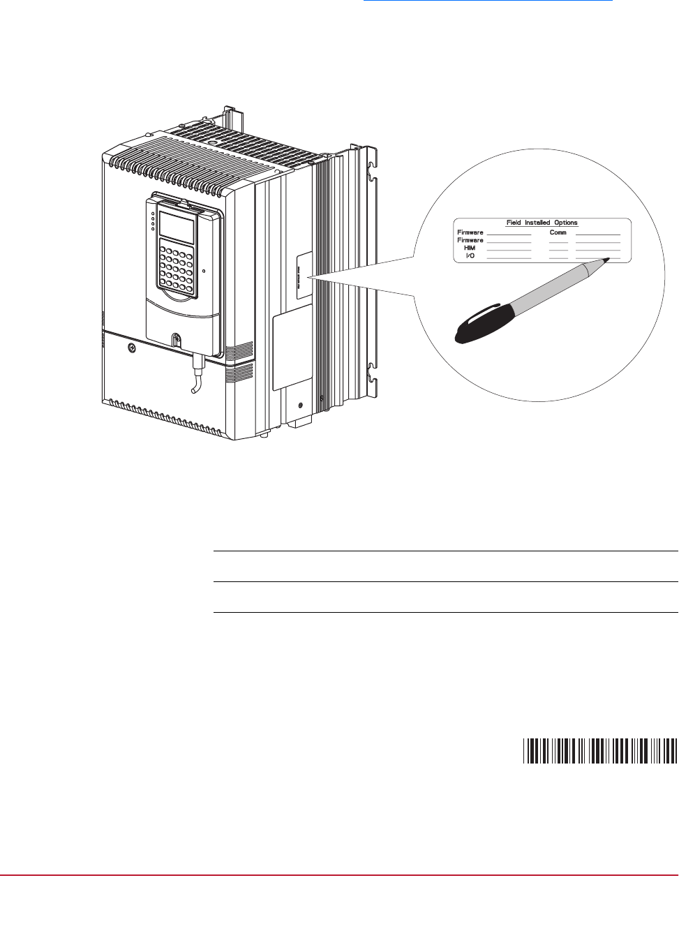Field Installed Option label on the side of the drive (as shown below).