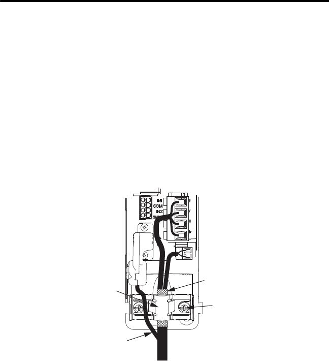 • Make sure the cable clamp tightens around the cable shield and provides a good bond