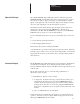 Chapter 7 Programming The scanner input file is shown below. The output file is similar, it is addressed O:1.0 to O:1.3. Bit Number Ra 0 Rack Ra 1 Rack Ra 2 Rack Ra 3 Rack 14 13 12 11 10 9 8 7 6 5 4 3 2 1 0 Input File Rack 0 Group 0 Word 1 I:1.0 Rack 0 Group 1 Word 1 I:1.1 Rack 0 Group 2 Word 2 I:1.2 Rack 0 Group 3 Word 3 I:1.3 Rack 0 Group 4 Word 4 not used I:1.4 Rack 0 Group 5 Word 5 not used I:1.5 Rack 0 Group 6 Word 6 not used I:1.