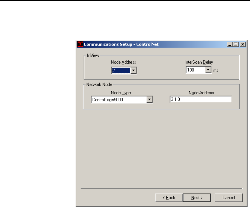 • Node address. Node address (1 to 99 decimal) of the InView