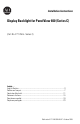 Installation Instructions Display Backlight for PanelView 600 (Series C) (Cat. No. 2711-NL5 - Series C) Inside. . . English Section ......................................................................................................3 Section en français ................................................................................................7 Deutscher Abschnitt ............................................................................................11 Sezione in Italiano ....................