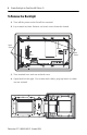 Display Backlight for PanelView 600 (Series C) To Install the Backlight 1. Install new backlights. Ensure backlights click into place. 2. Place display mounting plate over standoffs and install four display mounting plate screws. (Replacement screws are provided.) Torque to 6 to 8 in-lb (0.68 to 0.90 Nm). 3. Plug backlights into appropriate cable, making sure cables click together firmly. 4.
