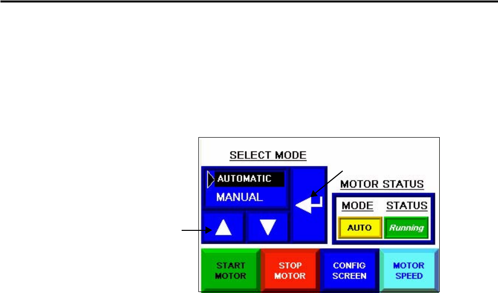 In Auto mode, the ladder logic in the MicroLogix controller controls the motor speed. The speed will never