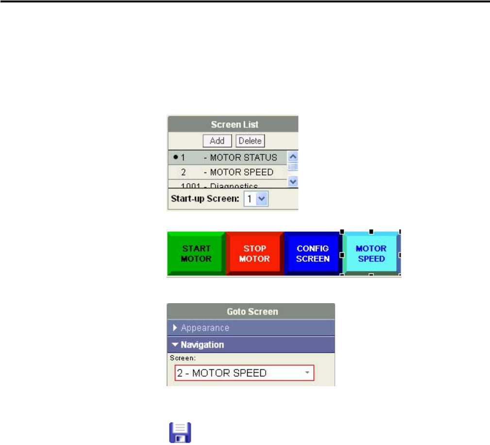 screen when the button is pressed. The Motor Speed screen did not exist when you first created the screen