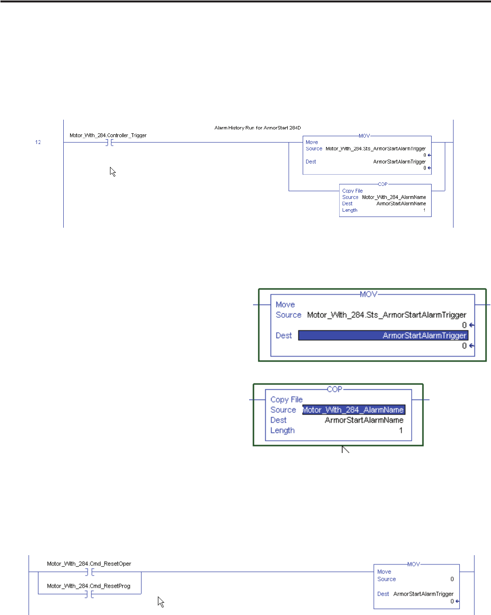 adjust for the name given to your Add-On Instruction. This example uses ArmorStart_With_284.