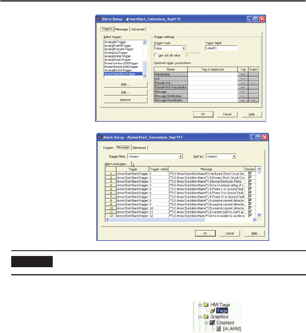 9. Configure the Alarm Trigger tags in the FactoryTalk View tag database.