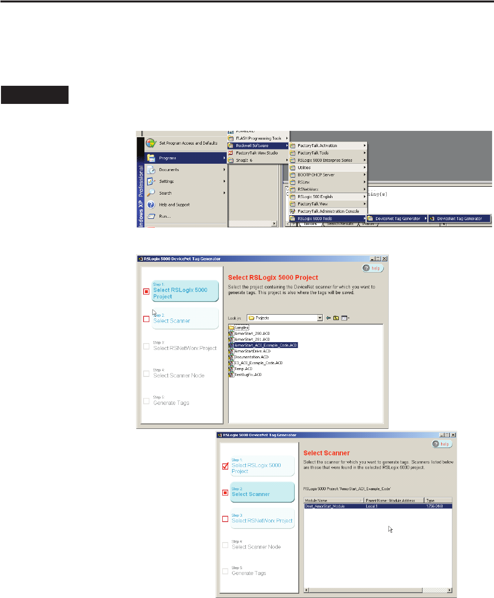 Make sure RSNetWorx software is closed before starting the DeviceNet Tag Generator Tool.