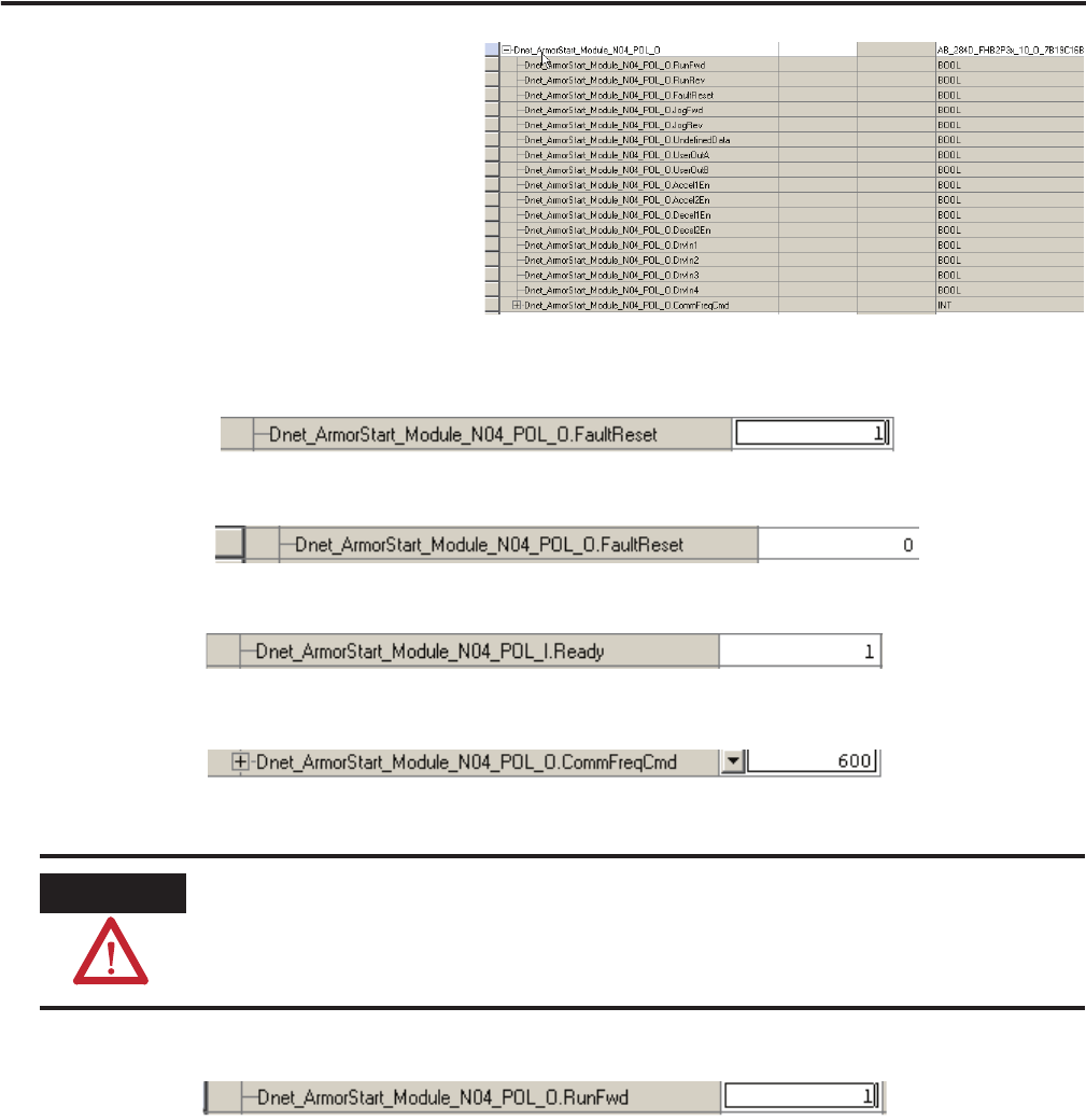 4. Change the FaultReset tag to 1 and press Enter to clear any initial faults.