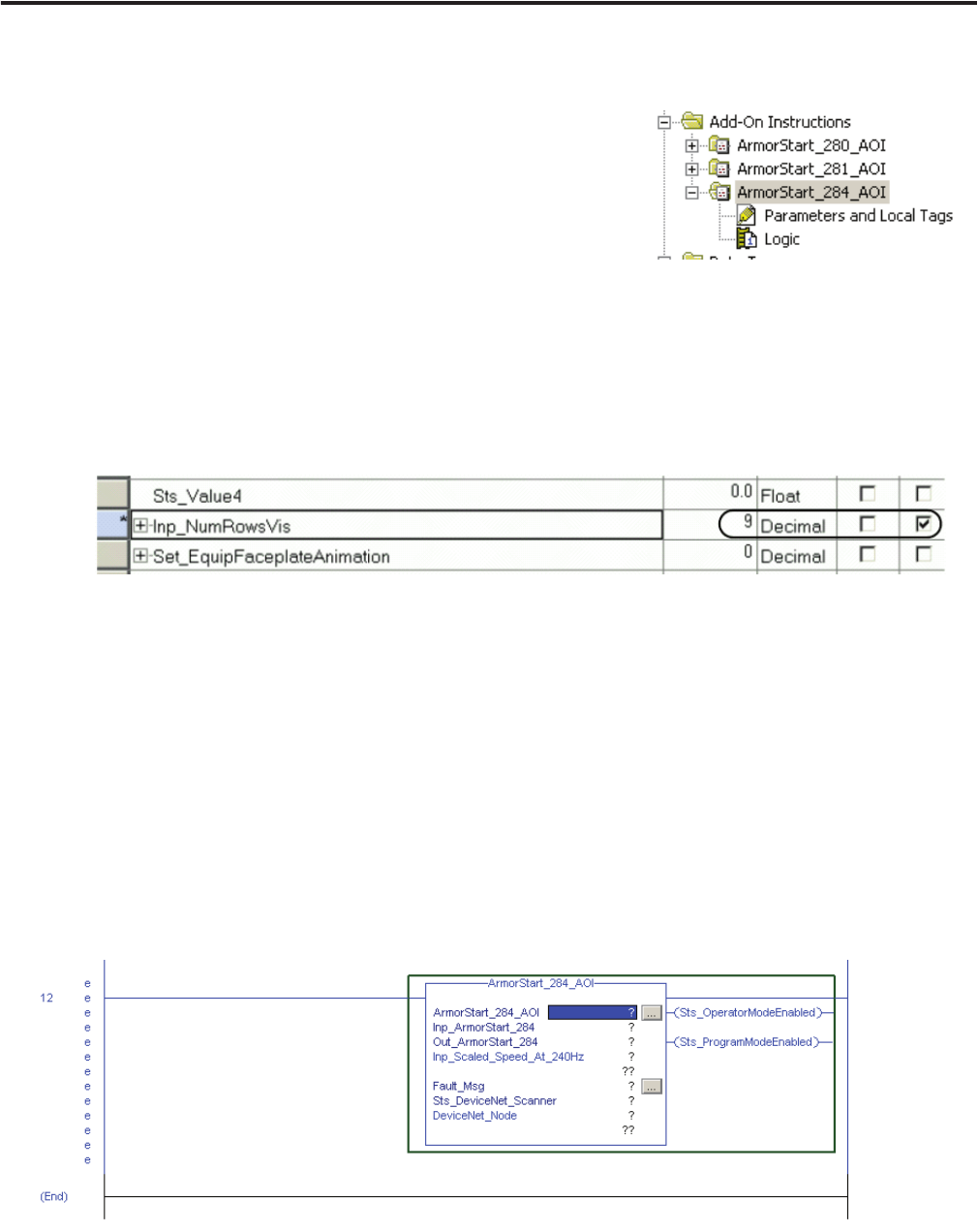 2. Set the tag Inp_NumRowsVis for your ArmorStart Add-On Instruction to the number of rows that you