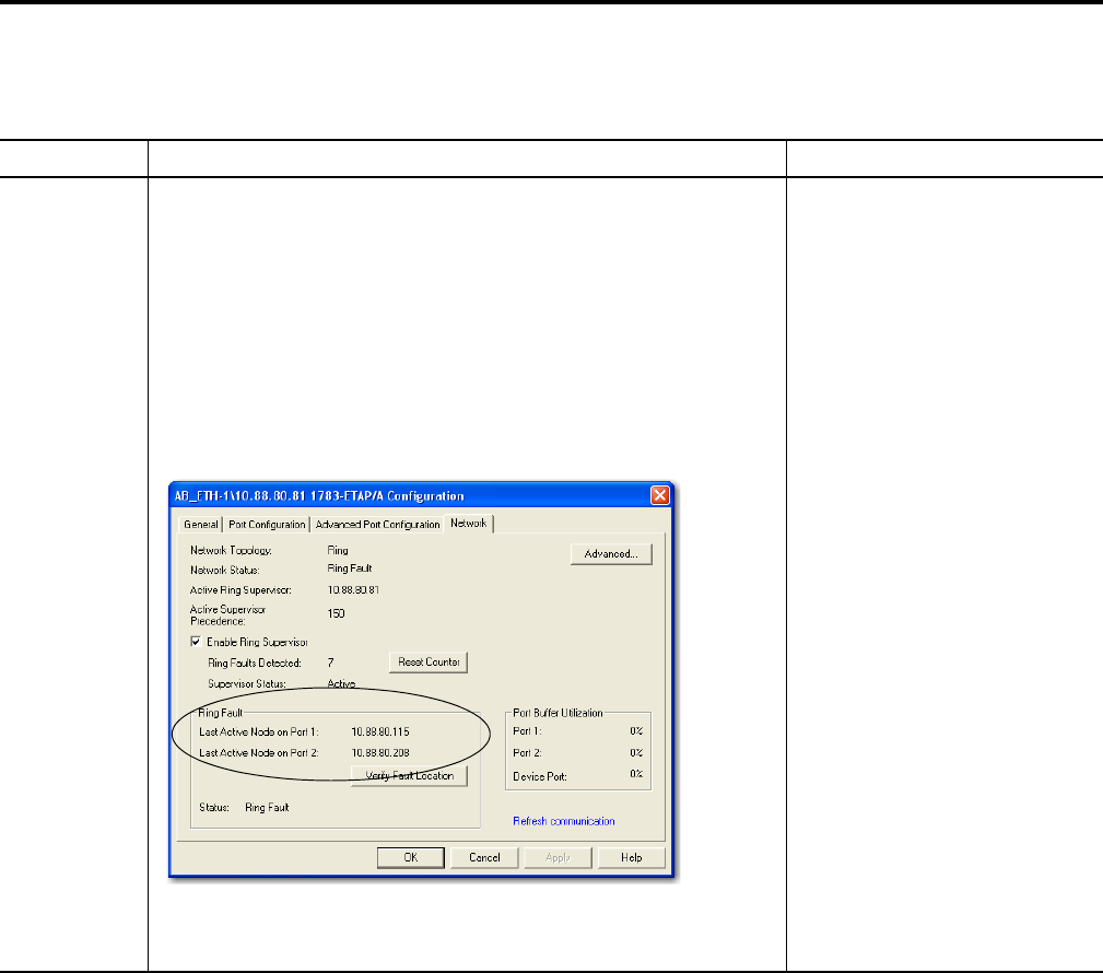 The screen shot below shows the Ring Fault section with IP addresses appearing for the last active