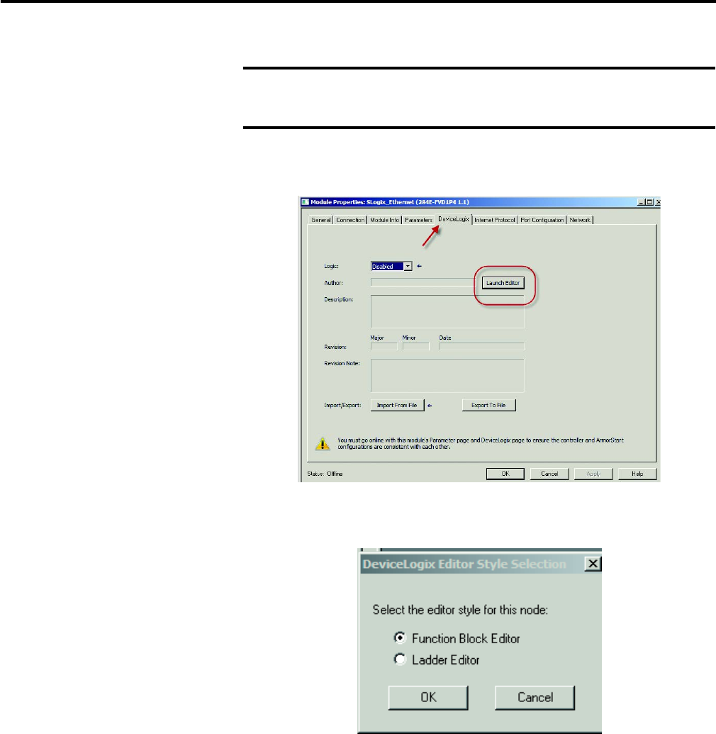 1. While in the AOP, click on the DeviceLogix tab. Click the Launch Editor