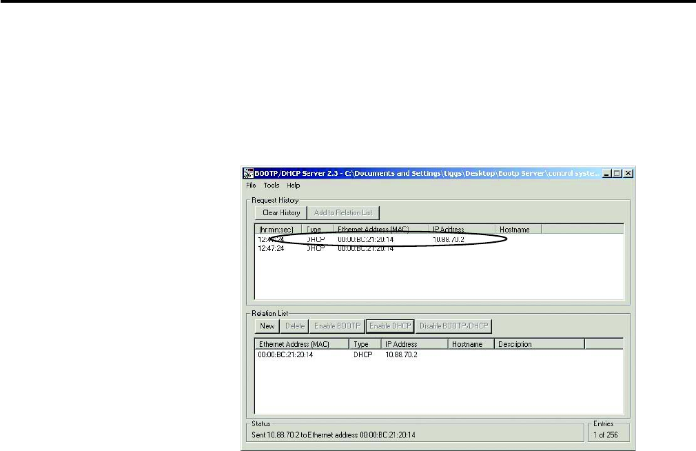Relation List panel, and click the Disable BOOTP/DHCP button.