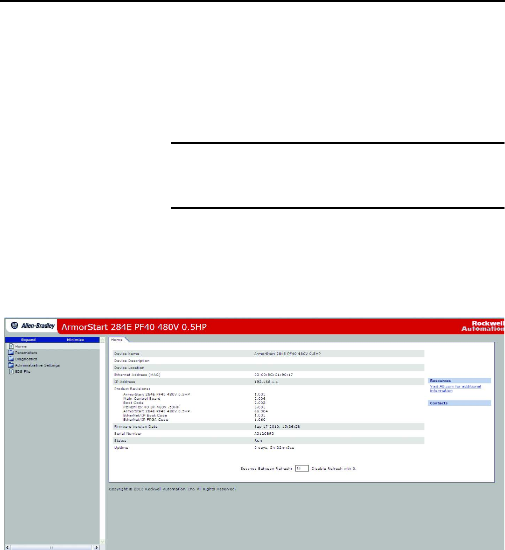 ArmorStart Ethernet/IP internal web server allows you to view information and