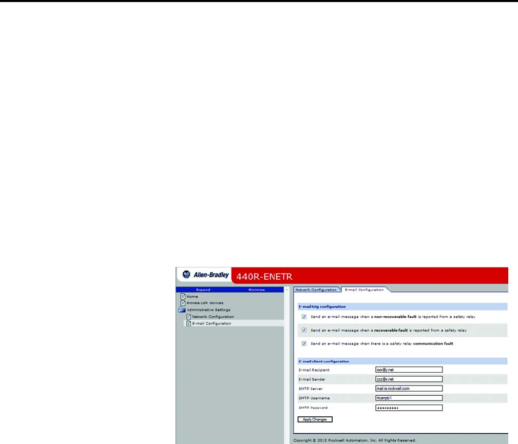 To use the E-mail Configuration page to configure the interface to send e-mail