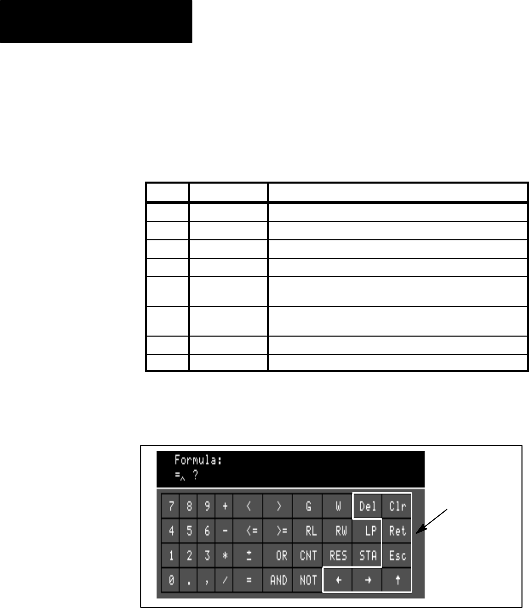 Ret Return Causes the formula to be saved in memory.