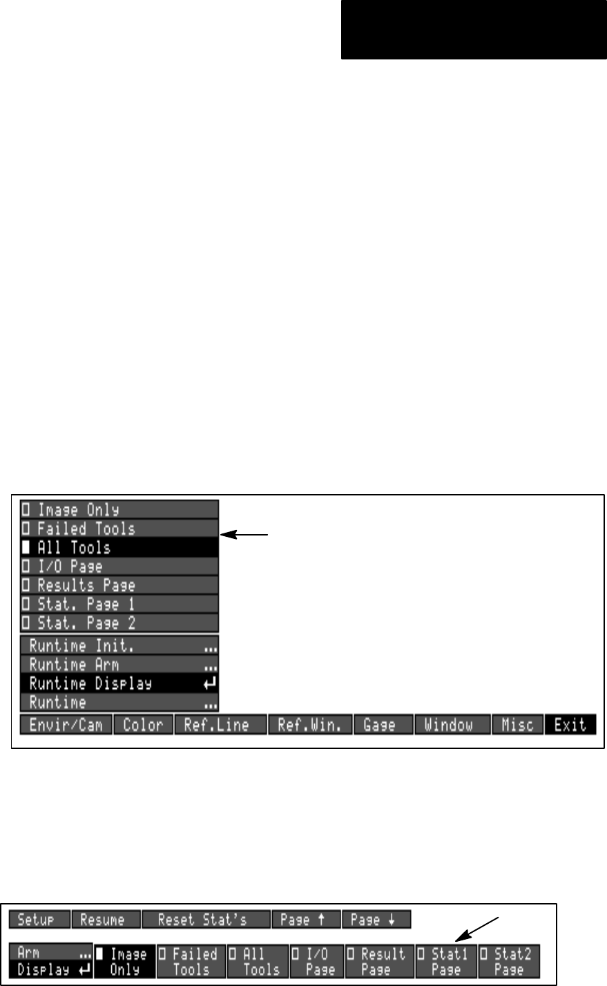 during run mode, using the Display menu (see Figure 5.4):