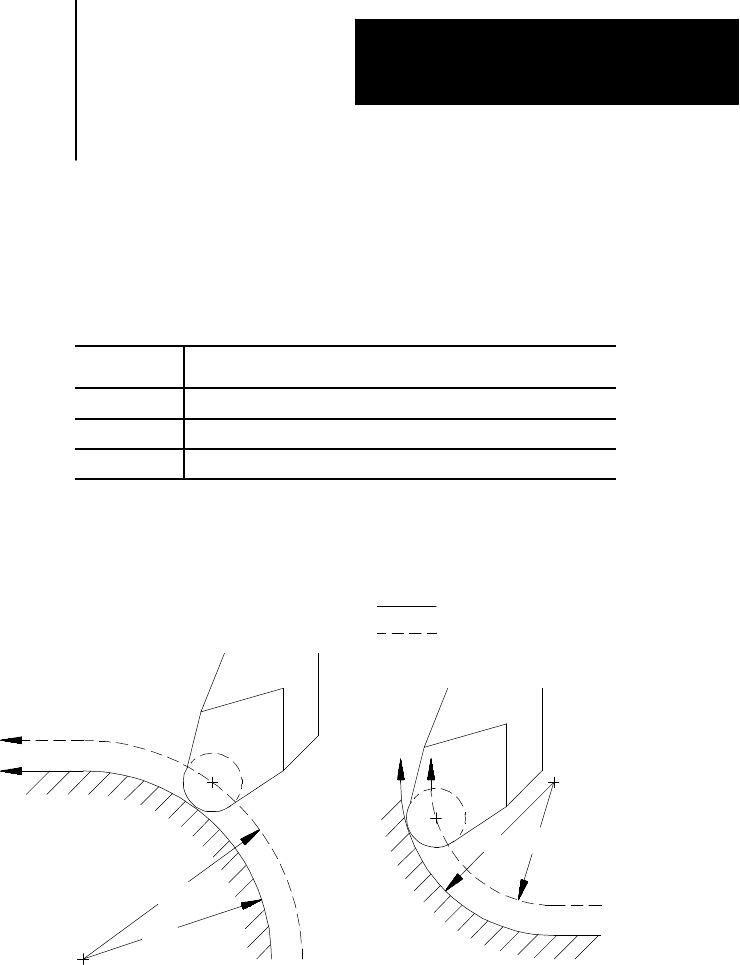 feedrate at the tool tip. The actual tool radius center feedrate reduces as