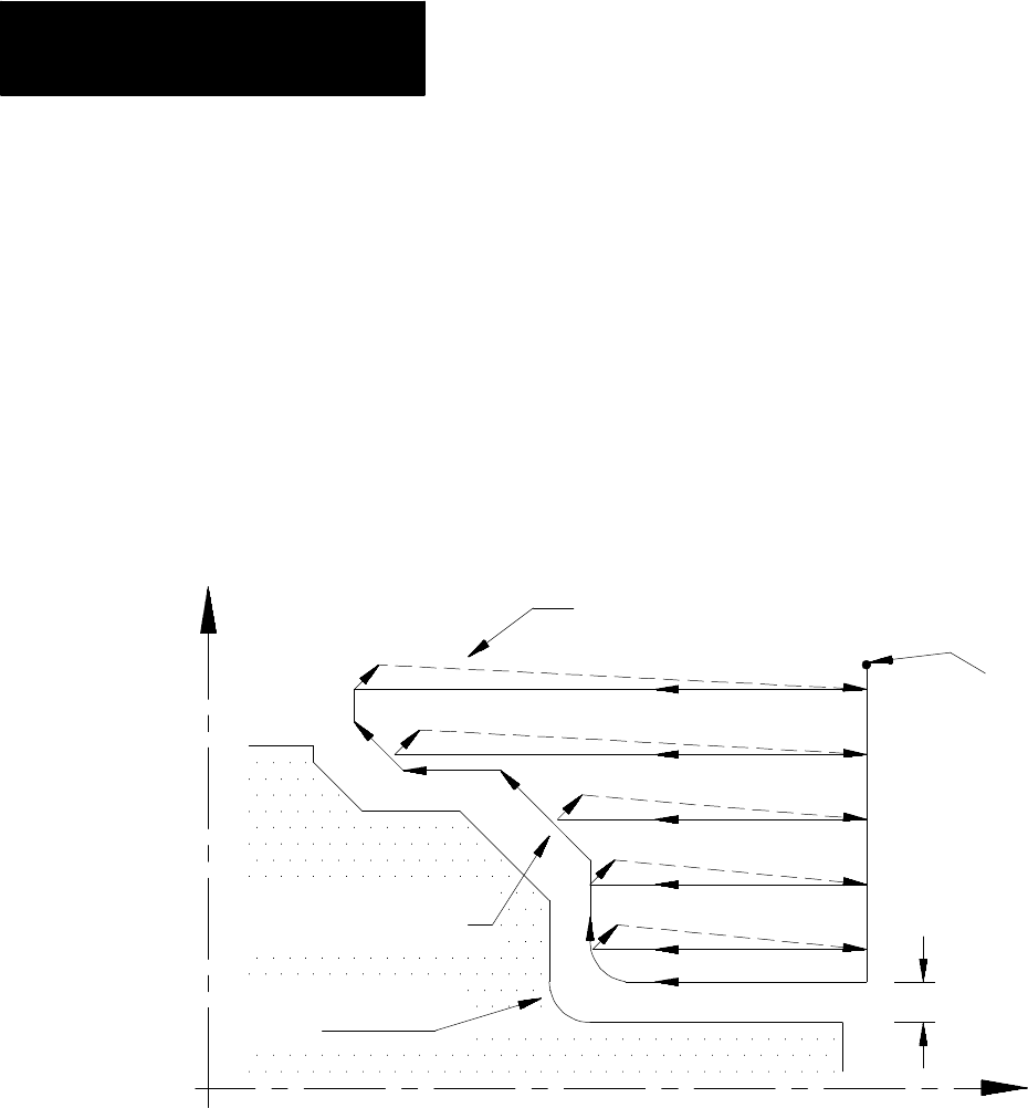 workpiece by making repetitive cuts parallel to the Z axis. A final pass
