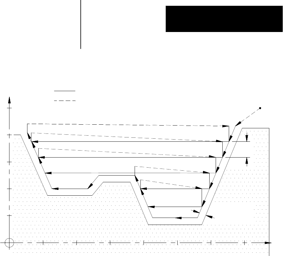 workpiece by making repetitive cuts parallel to the X axis. A final pass