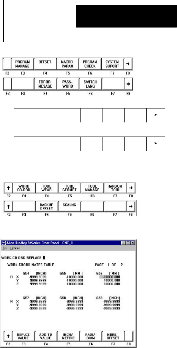 2. Press the {WORK CO-ORD} softkey to display the offset values for the