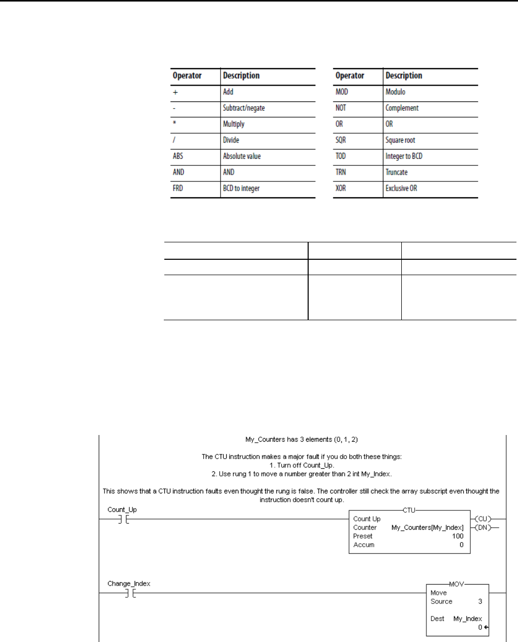 controller checks the array subscript in these instructions even if the rung is false.