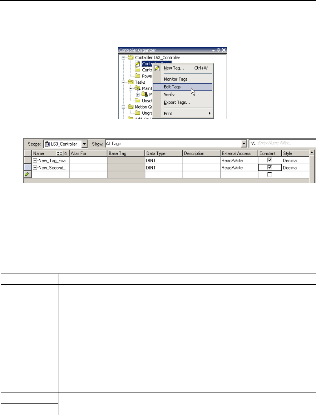 • The tag is used in an Add-On Instruction as an input parameter, output parameter, or local tag.