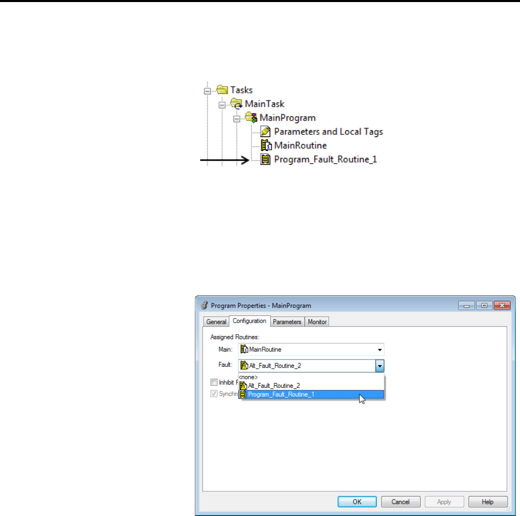 4. In the Fault field, choose the routine you want to be the program’s fault