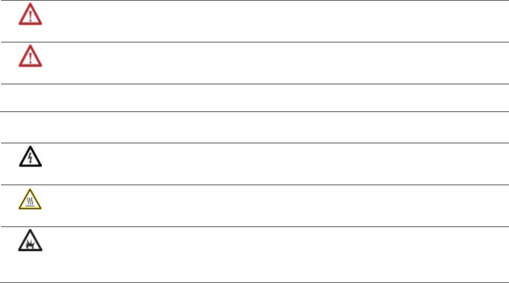 BURN HAZARD: Labels may be on or inside the equipment, for example, a drive or motor, to alert people that surfaces may reach dangerous