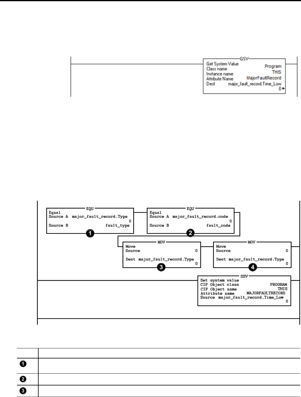 The second EQU instruction checks for a specific fault code. In Source B, enter the value for the code that you want to clear.