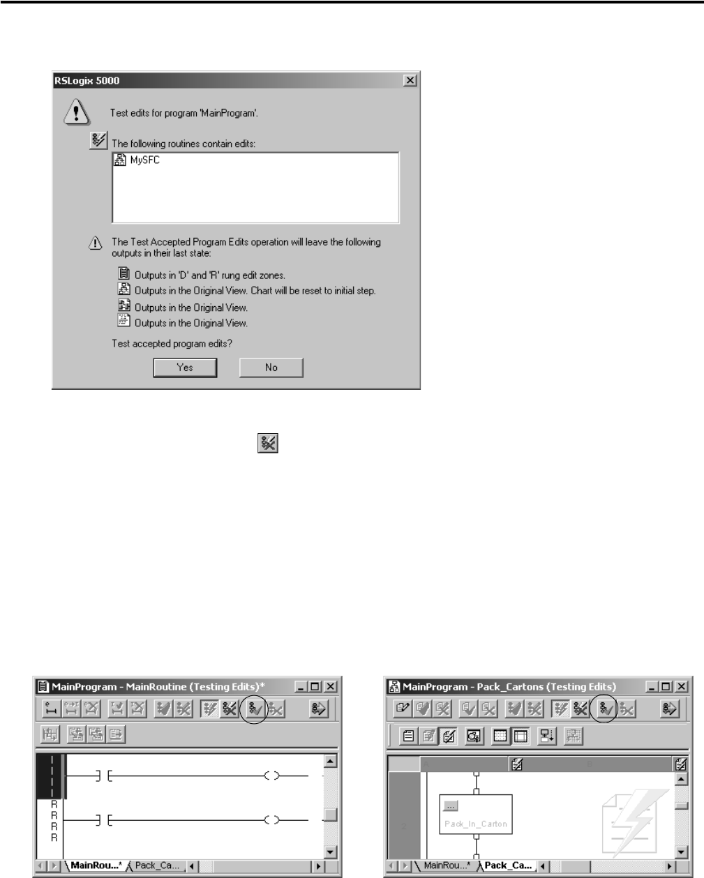 3. If the edits are not correct, click to switch execution back to your original logic (untest the edits).