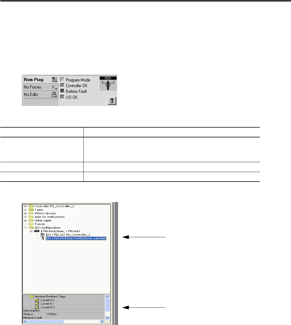 Solid green The controller is communicating with all the modules in its I/O configuration.