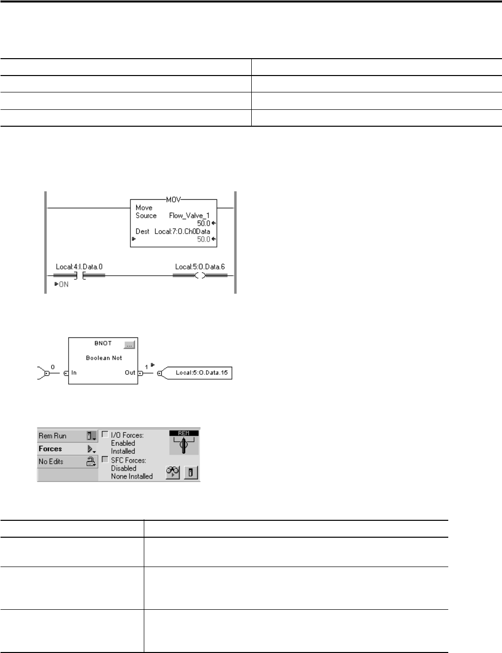 • Forcing an output tag overrides your logic and sends the force value to the output device.