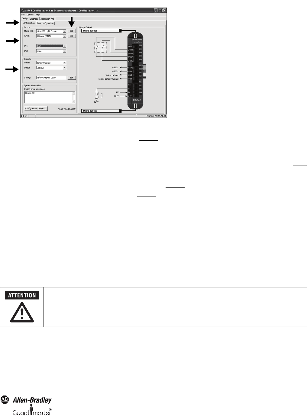 After configuring the Input data the “Design Output” area shows graphically how the safety component must be connected to the control unit (Figure